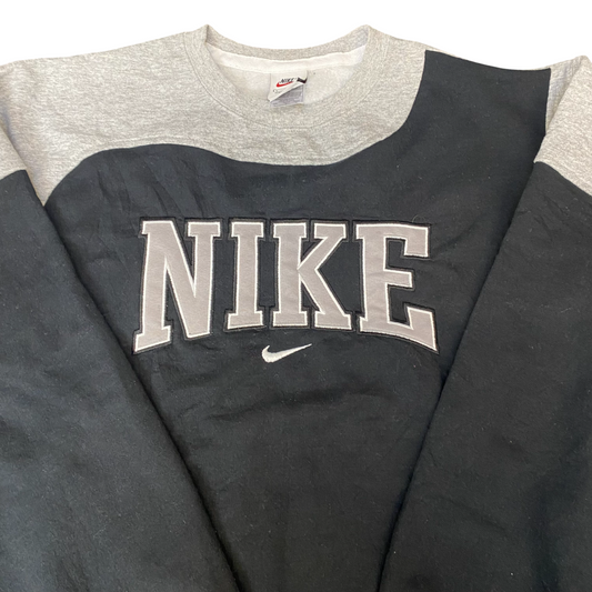 Nike Reworked Sweatshirt Mens Large Black Grey Embroidered Spellout Logo Vtg Y2K