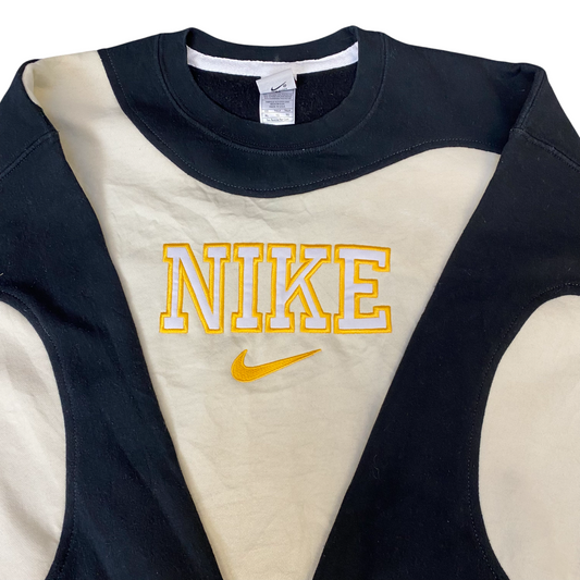 Nike Reworked Sweatshirt Mens XL Cream Black Embroidered Spellout Logo Vtg Y2K