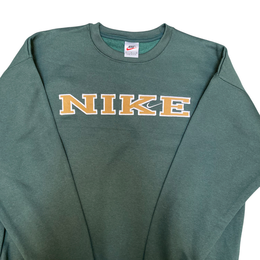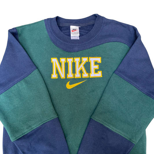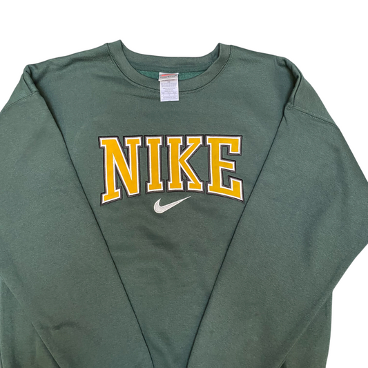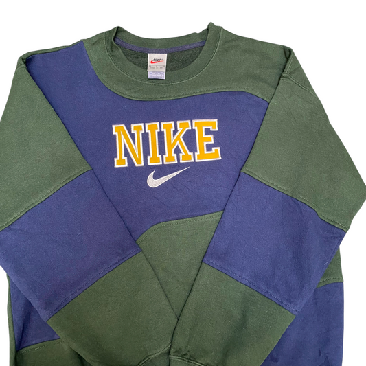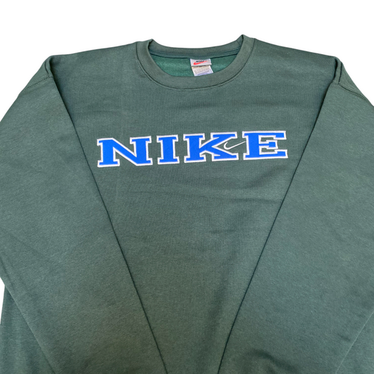 Nike Reworked Sweatshirt Men Medium Green Blue Embroidered Spellout Logo Vtg Y2K