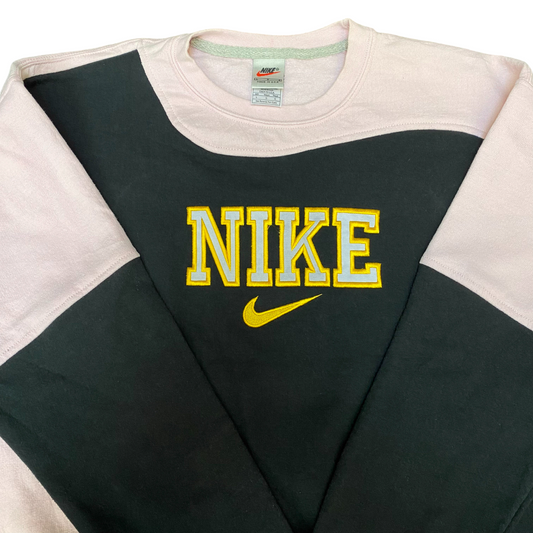 Nike Reworked Sweatshirt Mens Large Black Pink Embroidered Spellout Logo Vtg Y2K