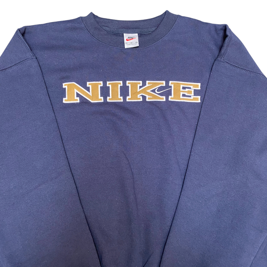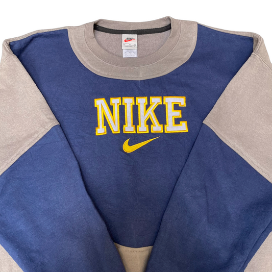 Nike Reworked Sweatshirt Mens XL Brown Blue Embroidered Spellout Logo Vtg Y2K
