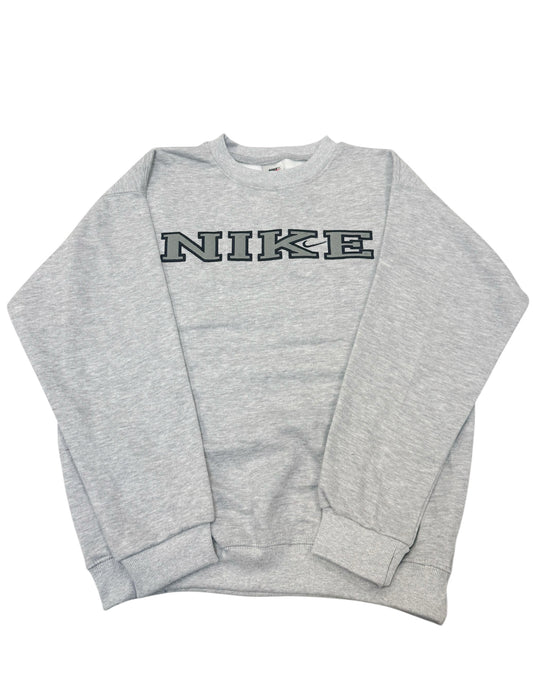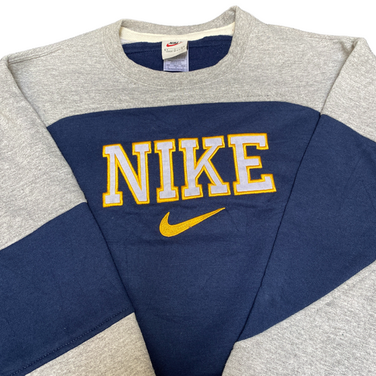 Nike Reworked Sweatshirt Mens S Grey Blue Embroidered Spellout Logo Vintage Y2K