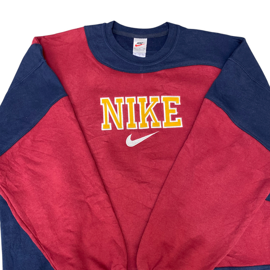 Nike Reworked Sweatshirt Mens XL Red Blue Embroidered Spellout Logo Vintage Y2K