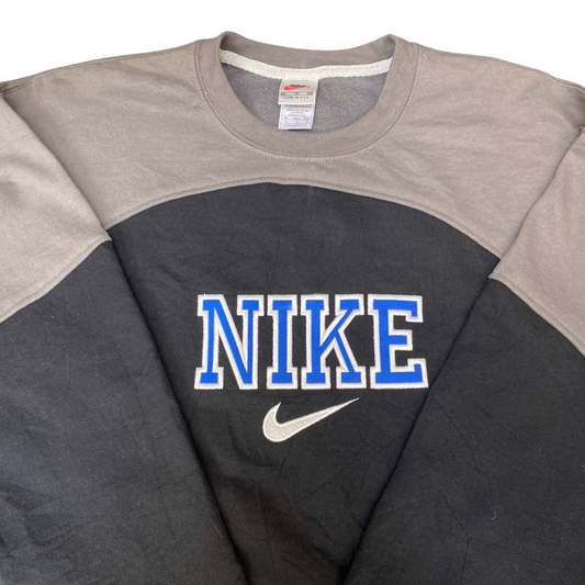 Nike Reworked Sweatshirt Men XL Grey Black Embroidered Spellout Logo Vintage Y2K