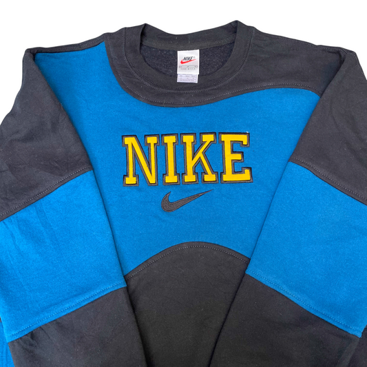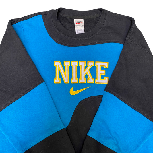 Nike Reworked Sweatshirt Mens M Black Blue Embroidered Spellout Logo Vintage Y2K