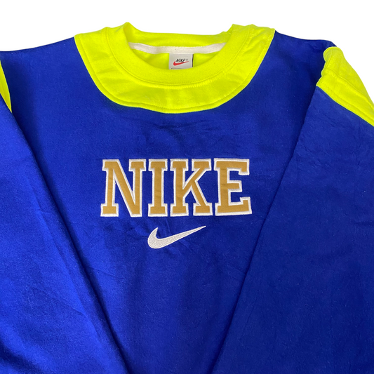 Nike Reworked Sweatshirt Mens Large Blue Green Embroidered Spellout Logo Vtg Y2K
