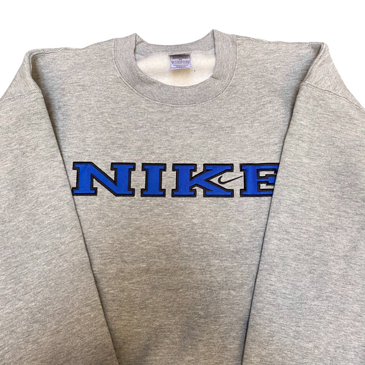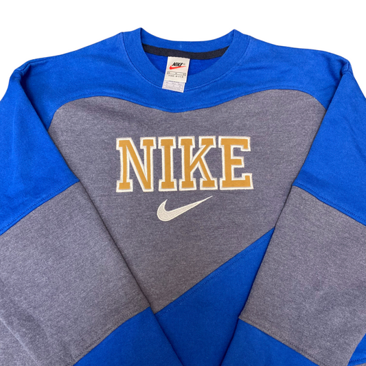 Nike Reworked Sweatshirt Mens M Blue Grey Embroidered Spellout Logo Vintage Y2K