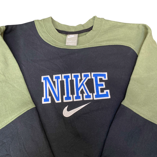 Nike Reworked Sweatshirt Men S Green Black Embroidered Spellout Logo Vintage Y2K