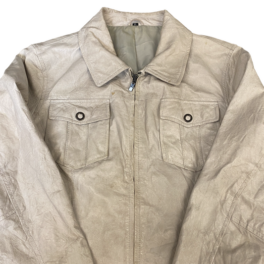 Womens Faux Leather Biker Jacket XL White Lined Long Sleeve Collared Full Zip