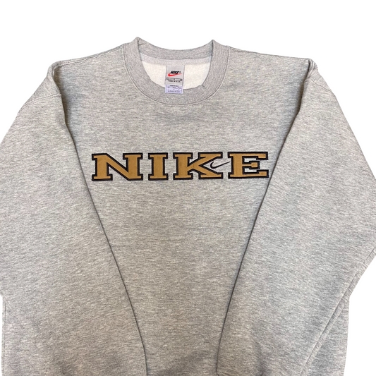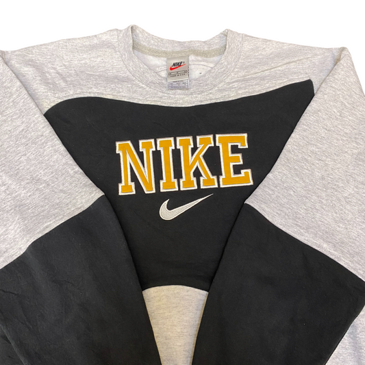 Nike Reworked Sweatshirt Mens M Black Grey Embroidered Spellout Logo Vintage Y2K