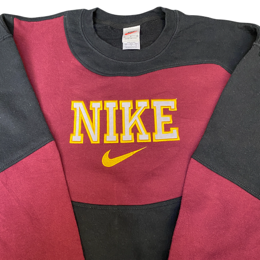 Nike Reworked Sweatshirt Mens L Black Maroon Embroidered Spellout Logo Vtg Y2K