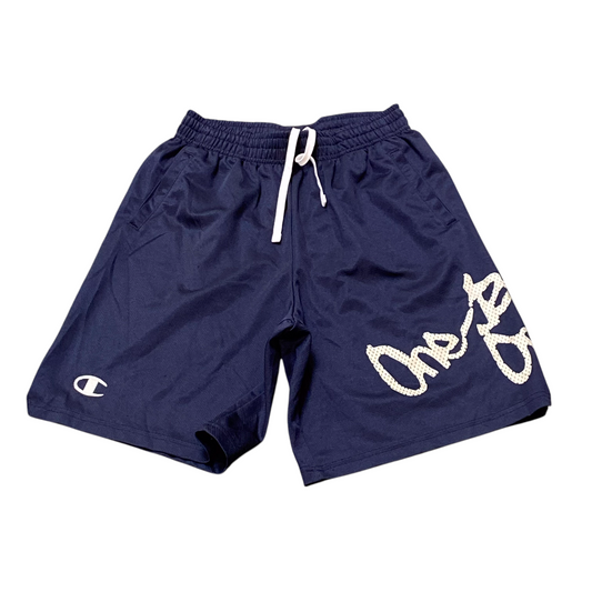Champion Shorts 24W Blue Spellout Logo Elastic Waist Mid Rise Athletic