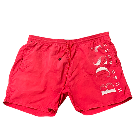 HUGO BOSS Shorts Mens 36W Red Thermal Lined Spellout Logo Elastic Waist Athletic