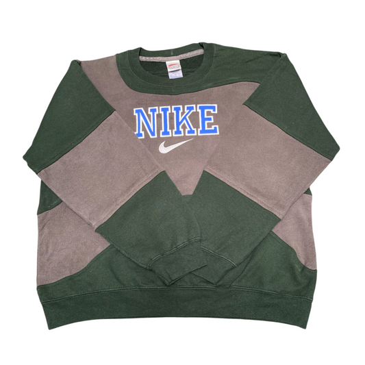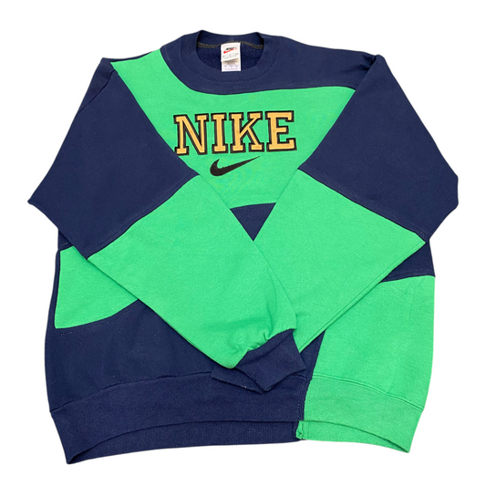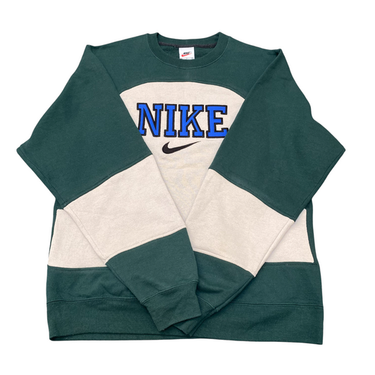 Nike Reworked Sweatshirt Mens S Navy Green Embroidered Spellout Logo Vintage Y2K