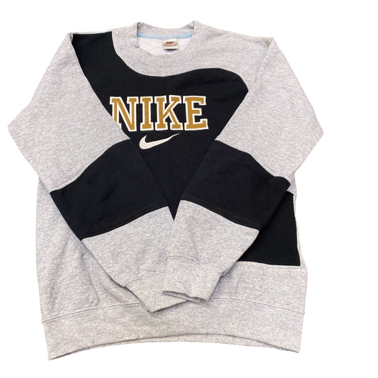Nike Reworked Sweatshirt Mens Small Grey Black Embroidered Spellout Logo Vtg Y2K