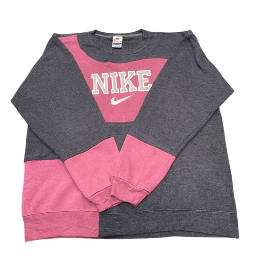 Nike Reworked Sweatshirt Mens XL Navy Pink Embroidered Spellout Logo Vintage Y2K