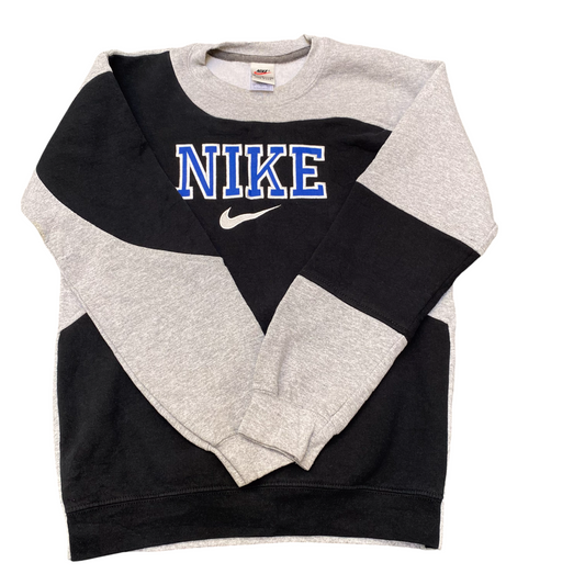 Nike Reworked Sweatshirt Mens Small Black Grey Embroidered Spellout Logo Vtg Y2K