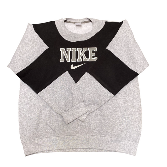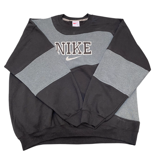 Nike Reworked Sweatshirt Mens L Black Grey Embroidered Spellout Logo Vintage Y2K