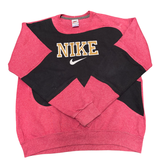 Nike Reworked Sweatshirt Mens S Coral Black Embroidered Spellout Logo Vtg Y2K