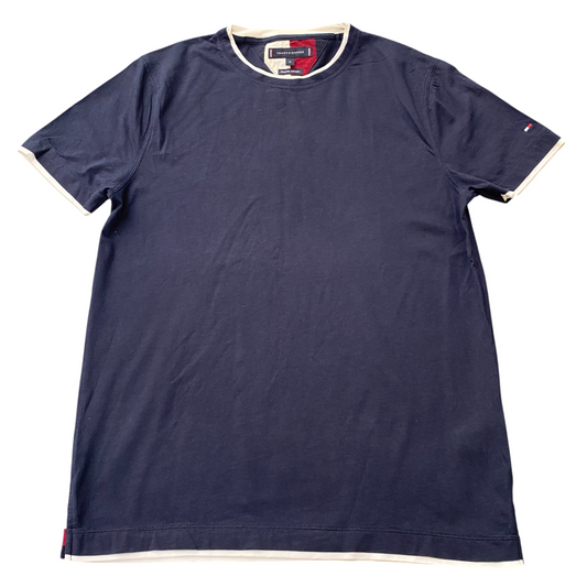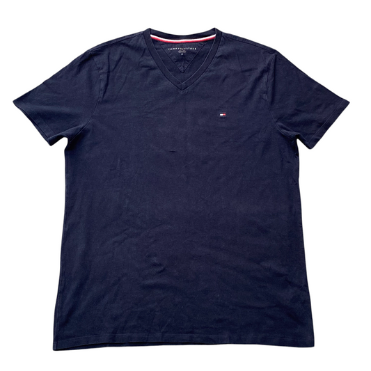 Tommy Hilfiger T Shirt Mens Medium Blue Short Sleeve Logo V Neck Pullover Tee