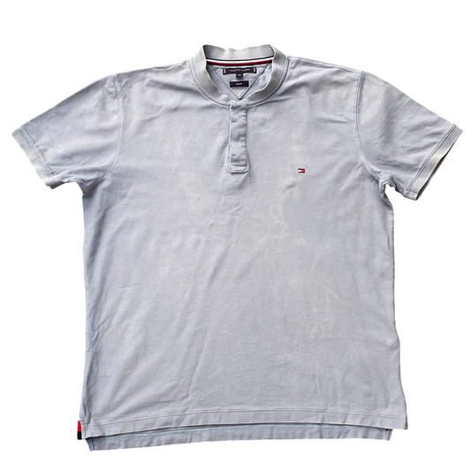 Tommy Hilfiger Shirt Mens XXL Blue Slim Fit High Low Short Sleeve Henley Neck
