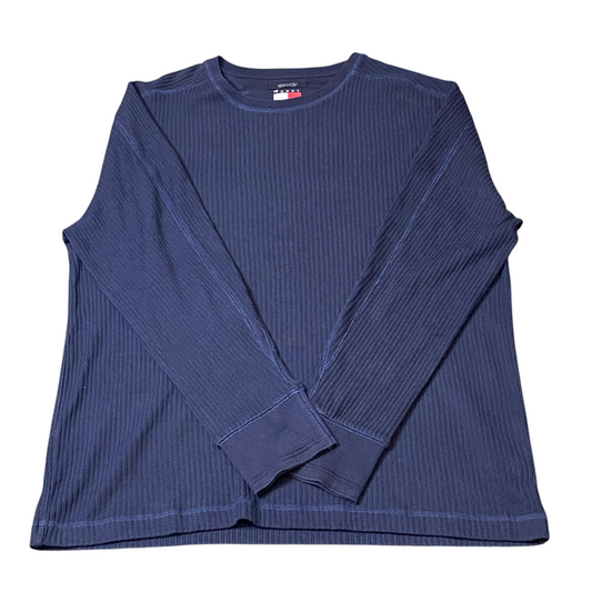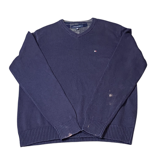 Tommy Hilfiger Jumper Mens L Blue Long Sleeve Ribbed Hem & Cuff V-Neck Pullover
