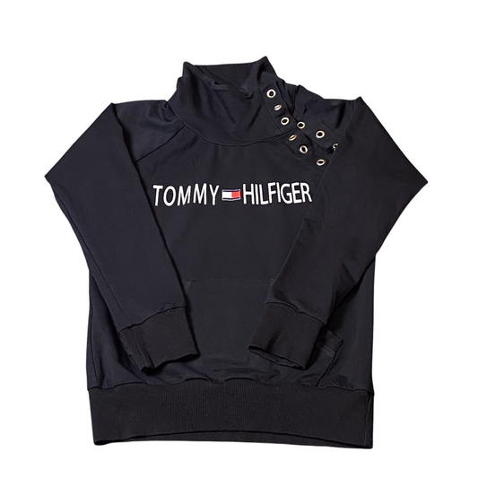 Tommy Hilfiger Sweatshirt Girls Medium Black Long Sleeve Ribbed Hem & Cuff Y2K