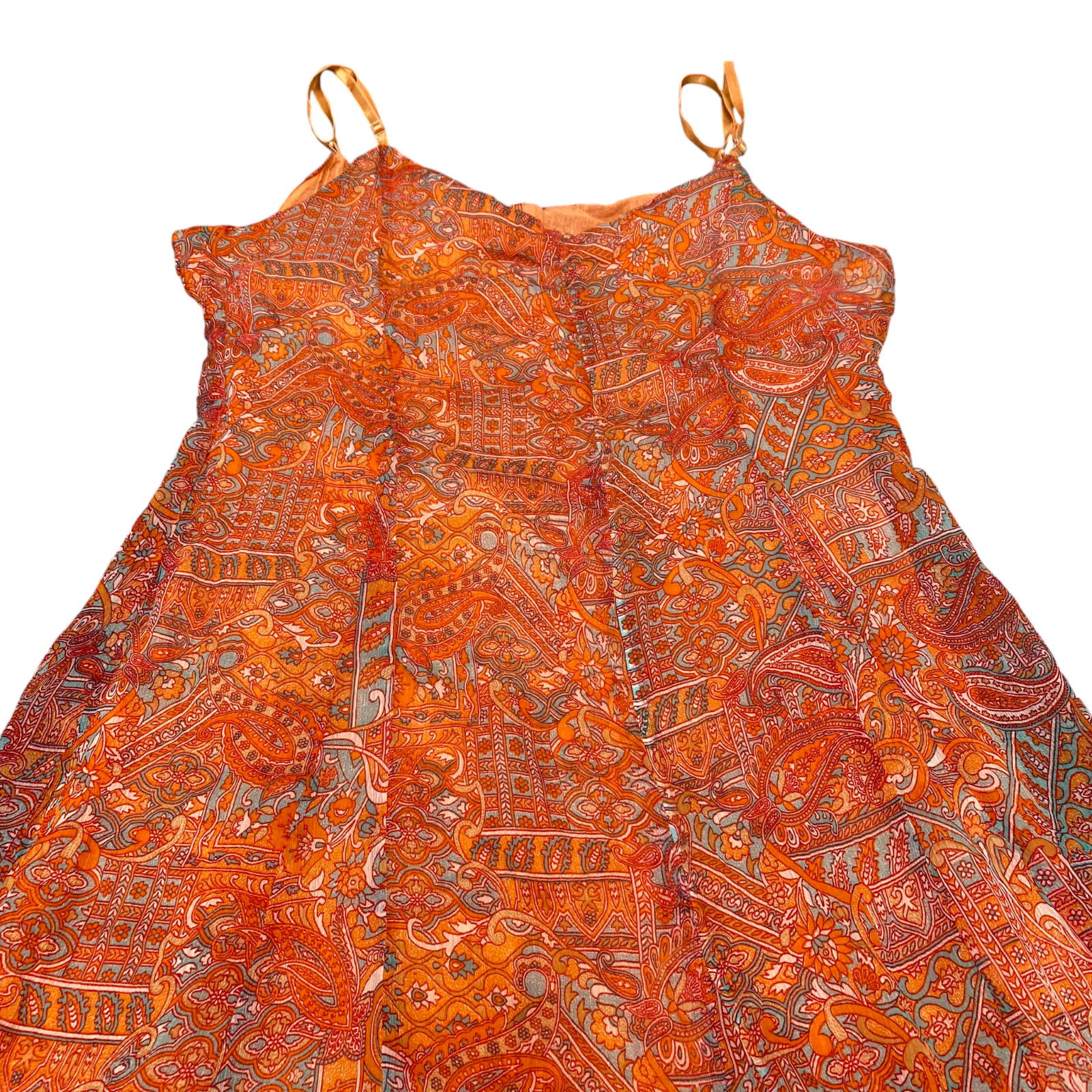 A-Line Dress Womens S Orange Paisley Sleeveless Halter Neck Spaghetti Straps