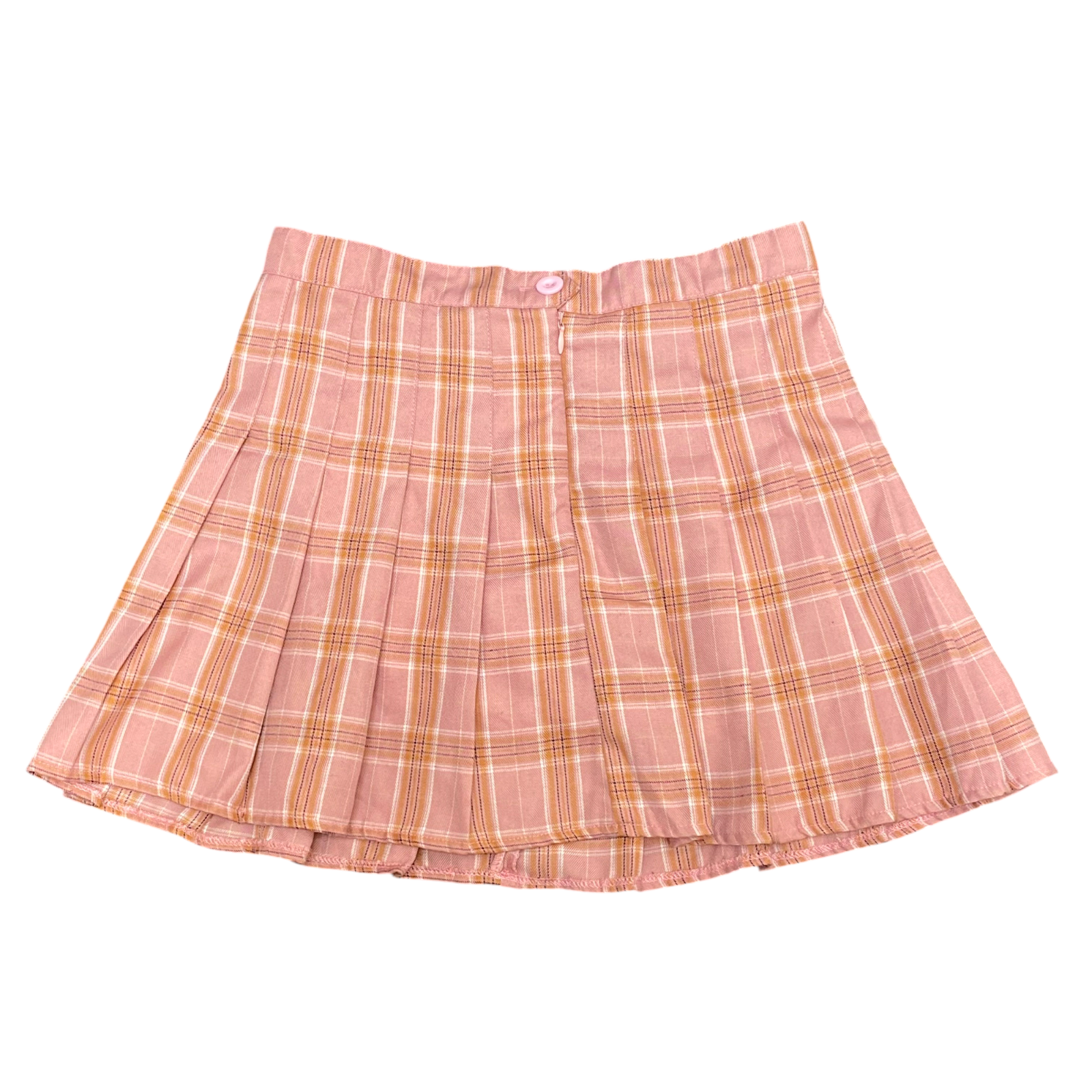 A-Line Mini Skirt Womens L Pink Plaid Pleated Lined School Preppy Outdoor