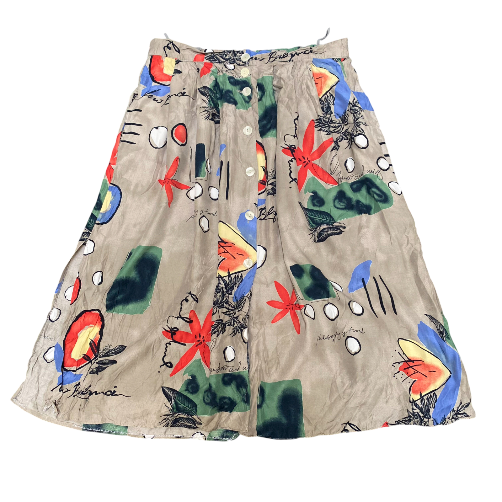 A-Line Skirt Womens L Brown Geometric Pleated Casual Button Front Outdoor