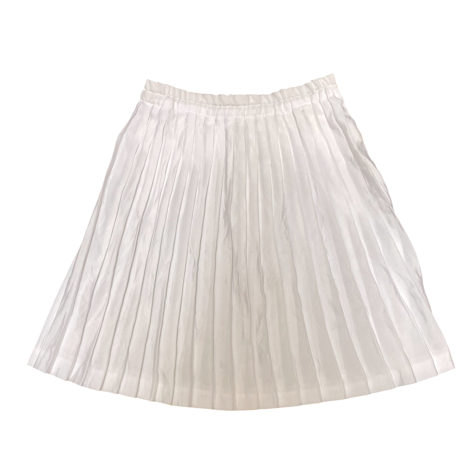 A Line Skirt Womens M White Solid Pleated Silk Satin Carual Fit Prepppy Zipper
