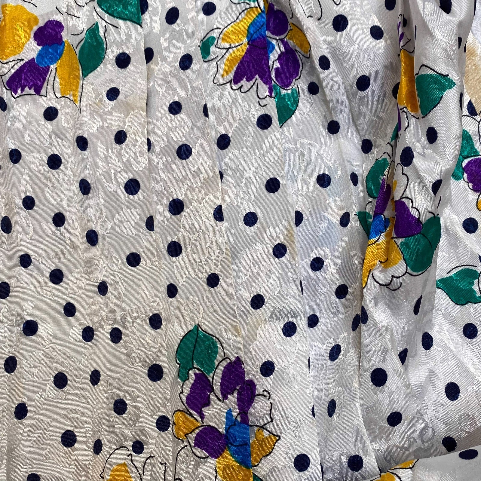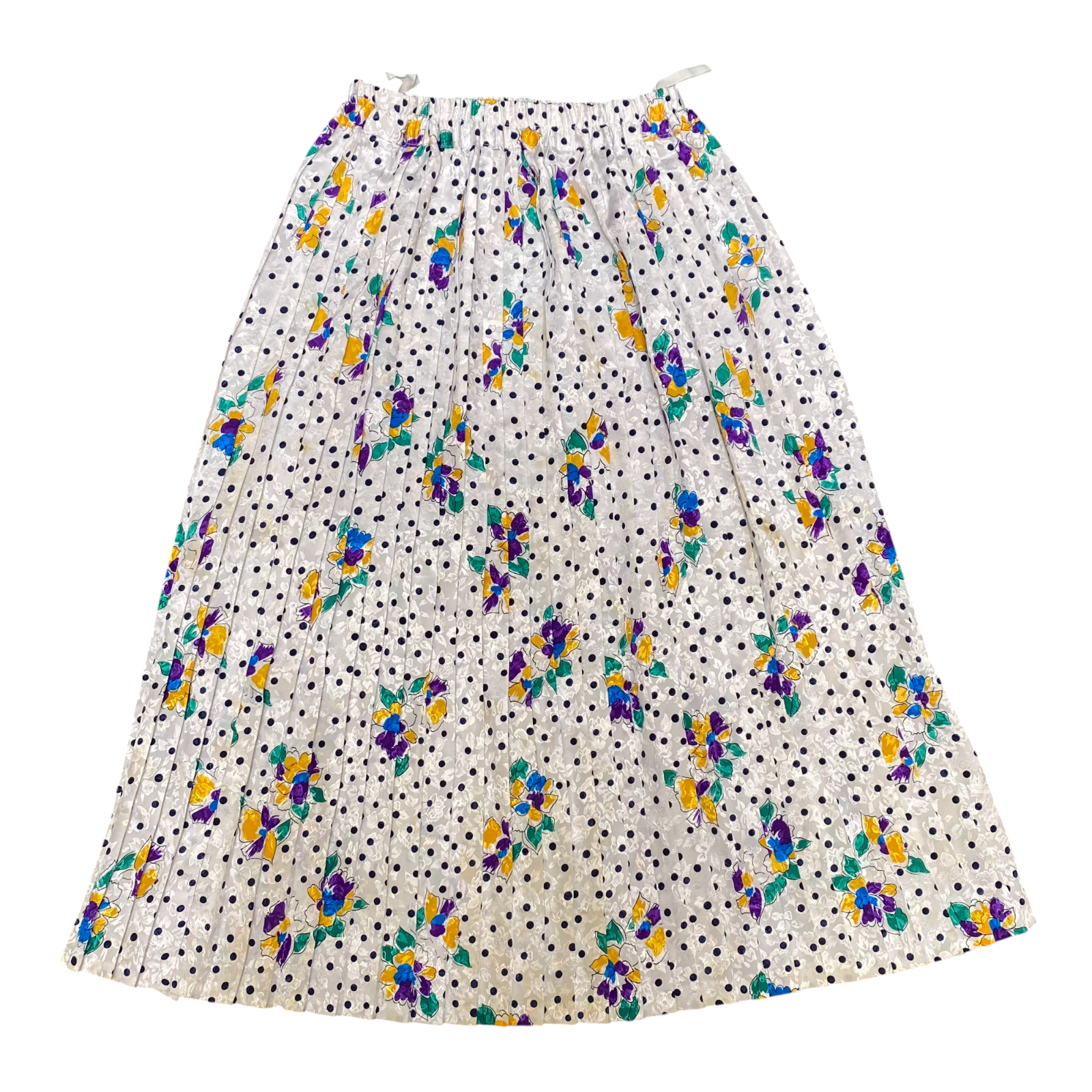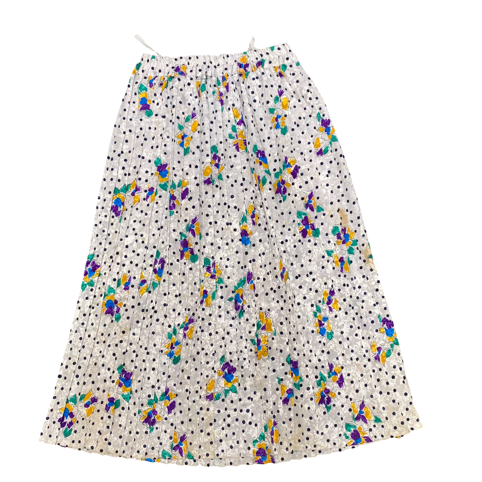 A Line Skirt Womens S White Polka Dot Floral Print Pleated Elastic Waist Casual