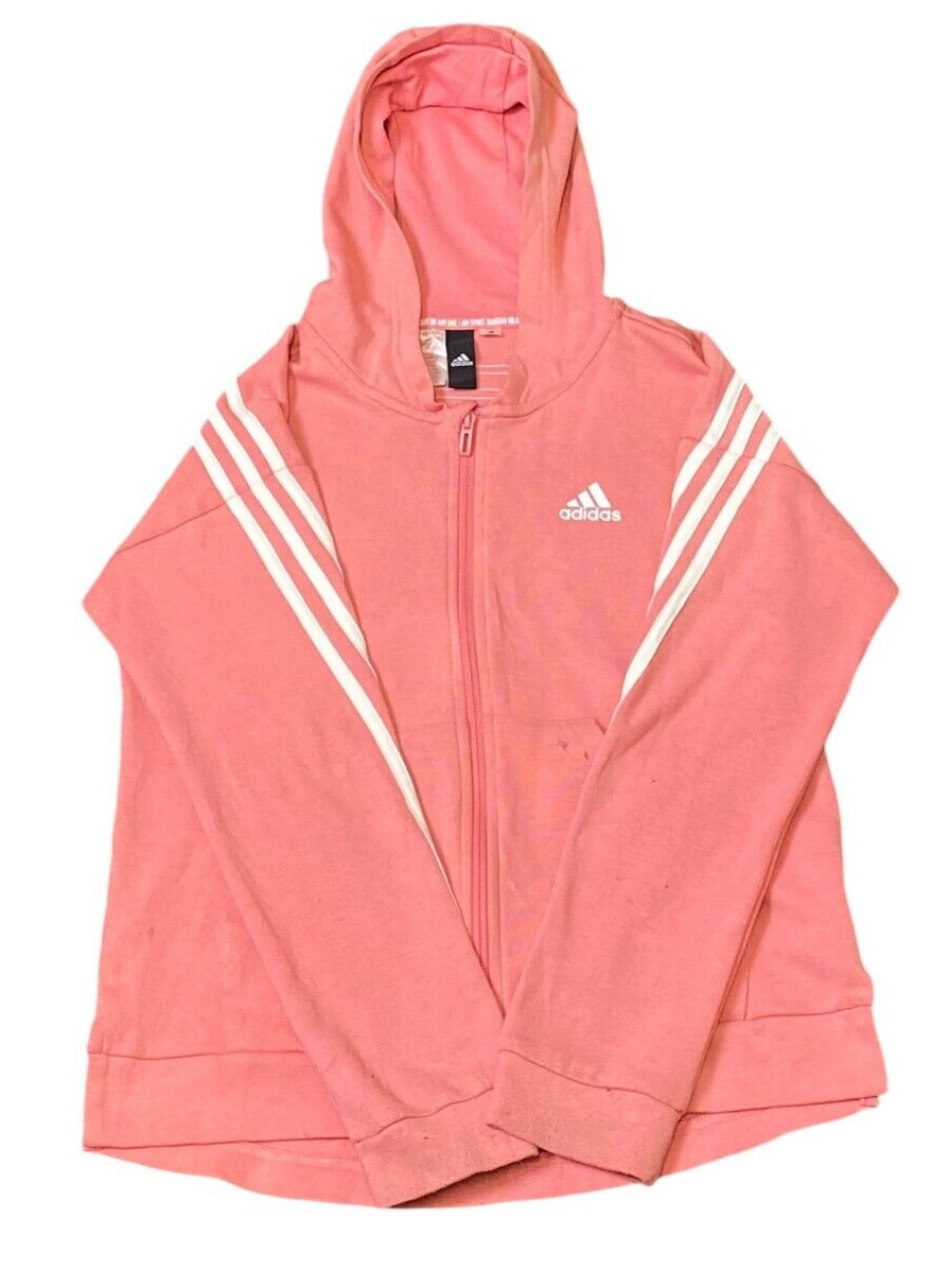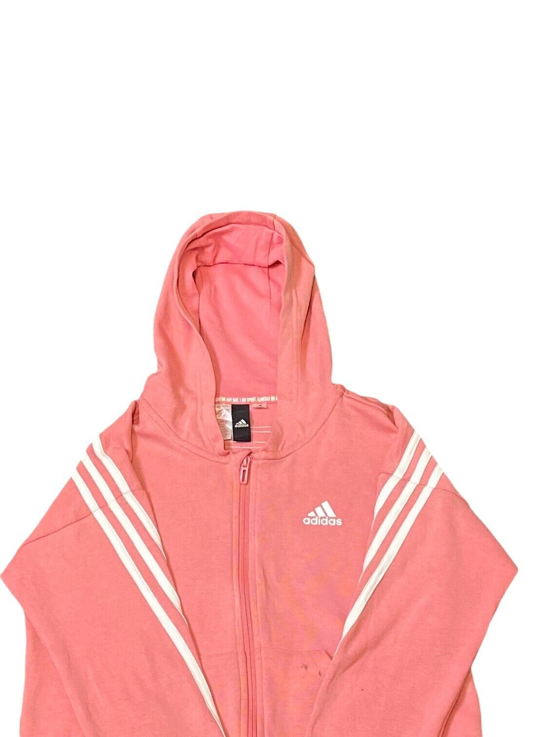 adidas Hoodie Women Medium Pink Sportswear Three Stripe Shoulder Sleeve Full Zip