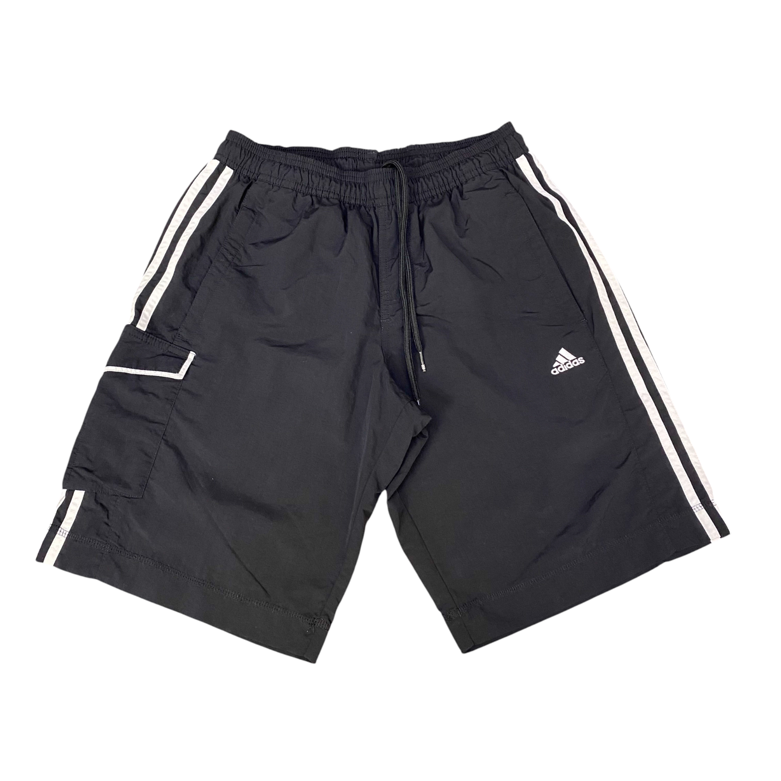 Adidas Running Shorts Mens Small Black 3 Stripes Athletic Gym Drawstring Waist