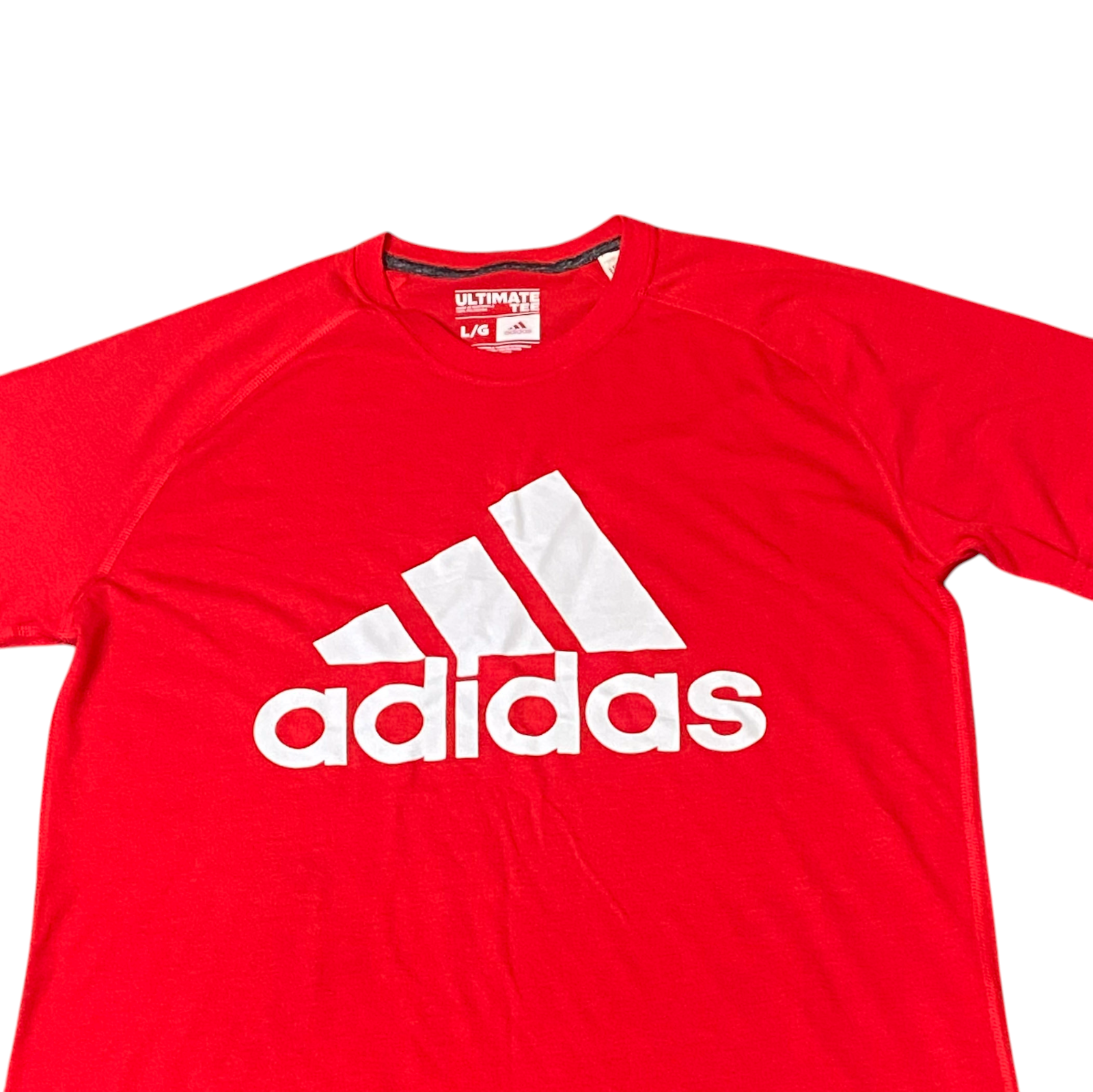 adidas Shirt Mens Large Red 3 Stripes Logo Short Sleeve Performance Ultimate Tee