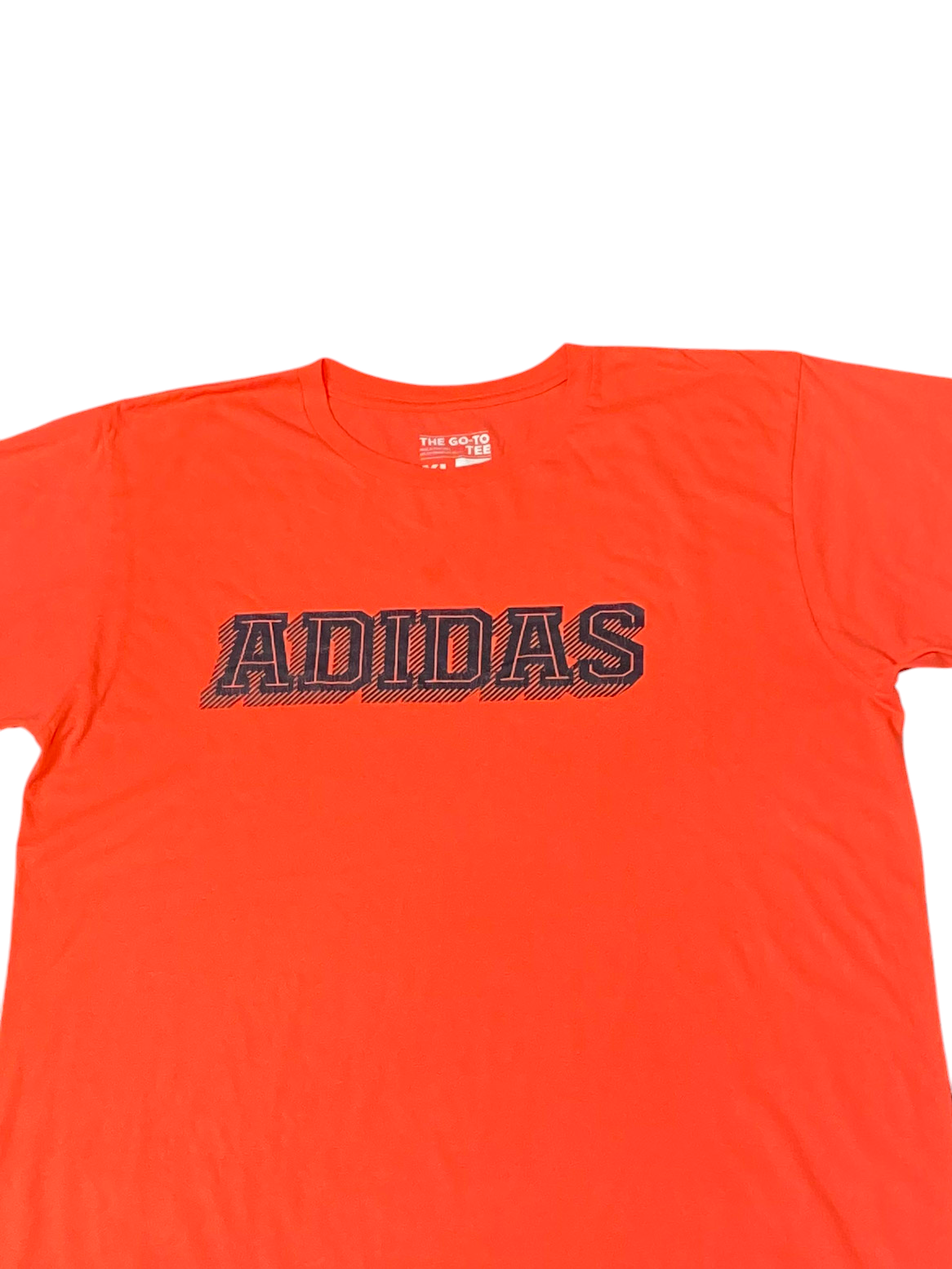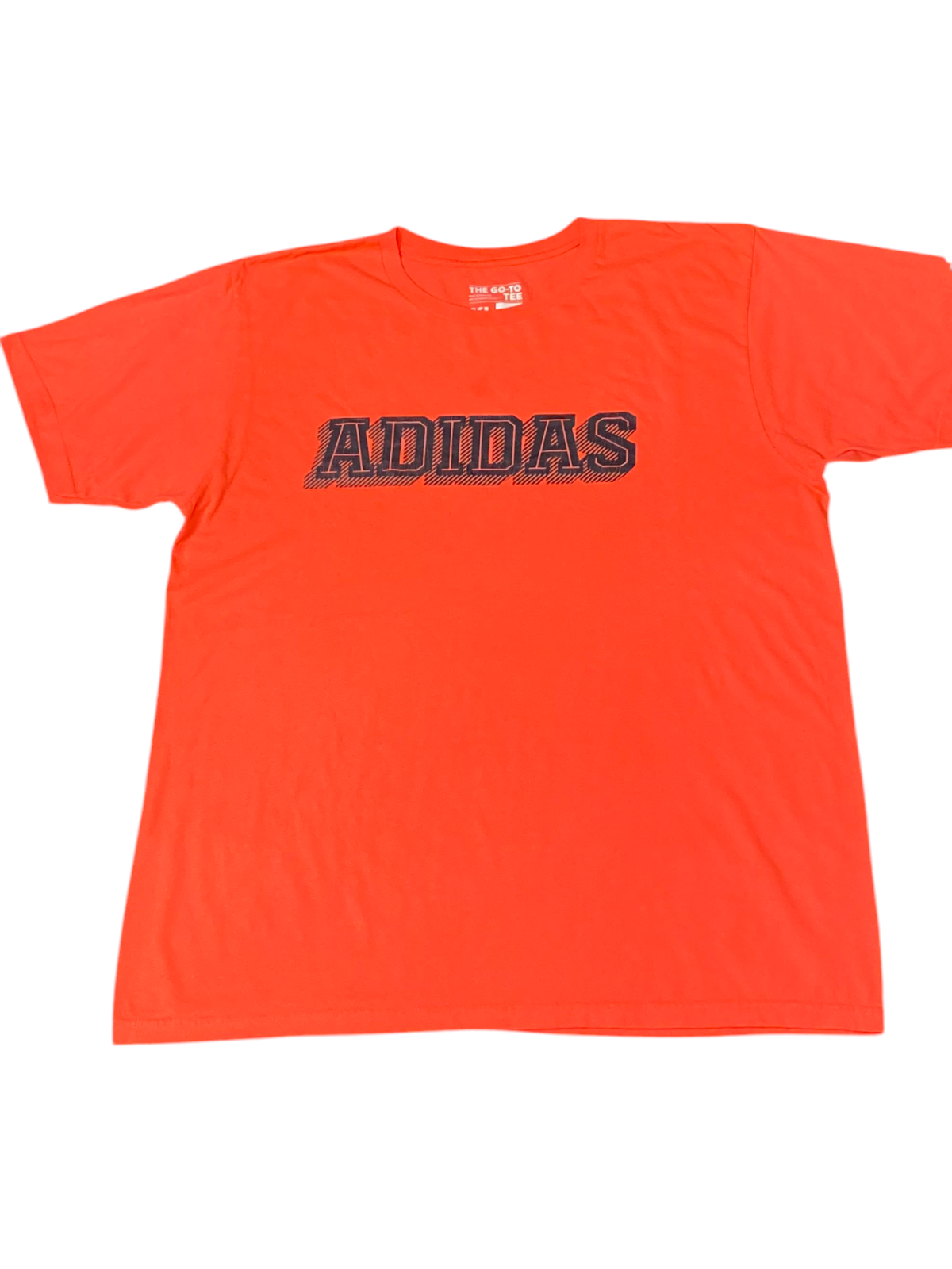 adidas Shirt Mens XL Orange Spellout Logo Short Sleeve Crew Neck The Go To Tee