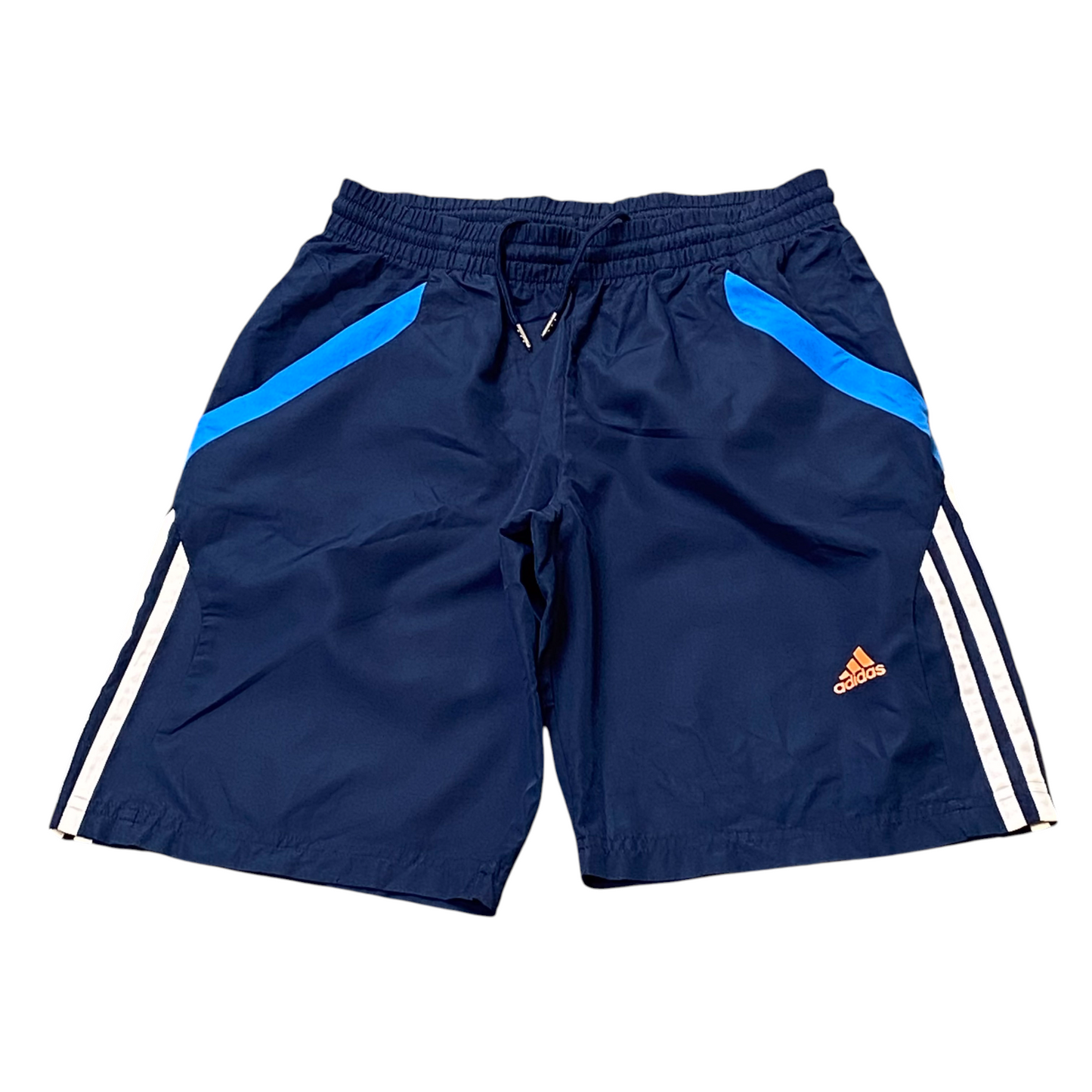adidas Shorts 26W Blue 3 Stripes Panel Elastic Waist Climalite Running Athletic