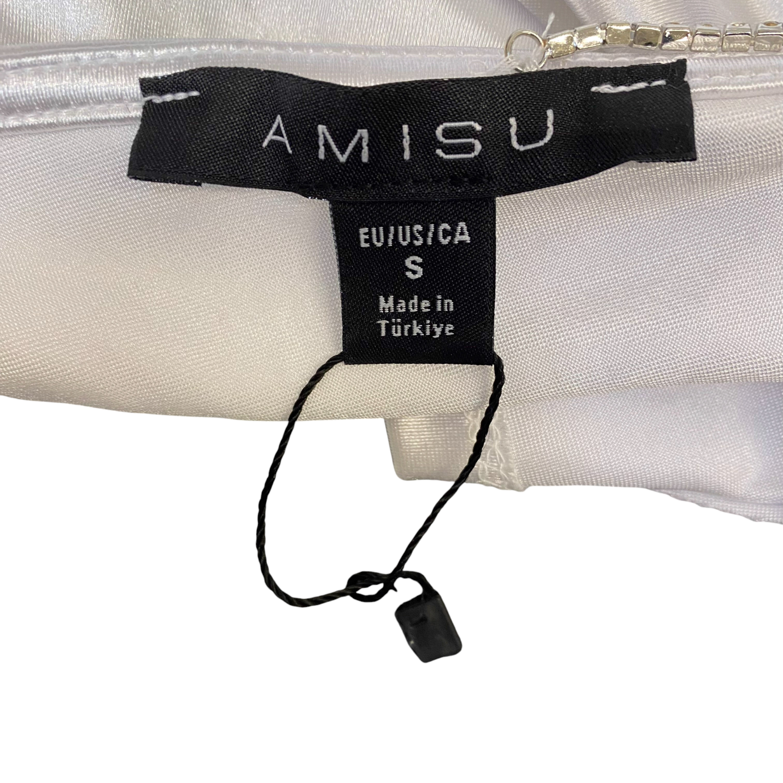Amisu Corset Top Womens S White Satin Diamante Jeweled Strap Back Zip Outdoor