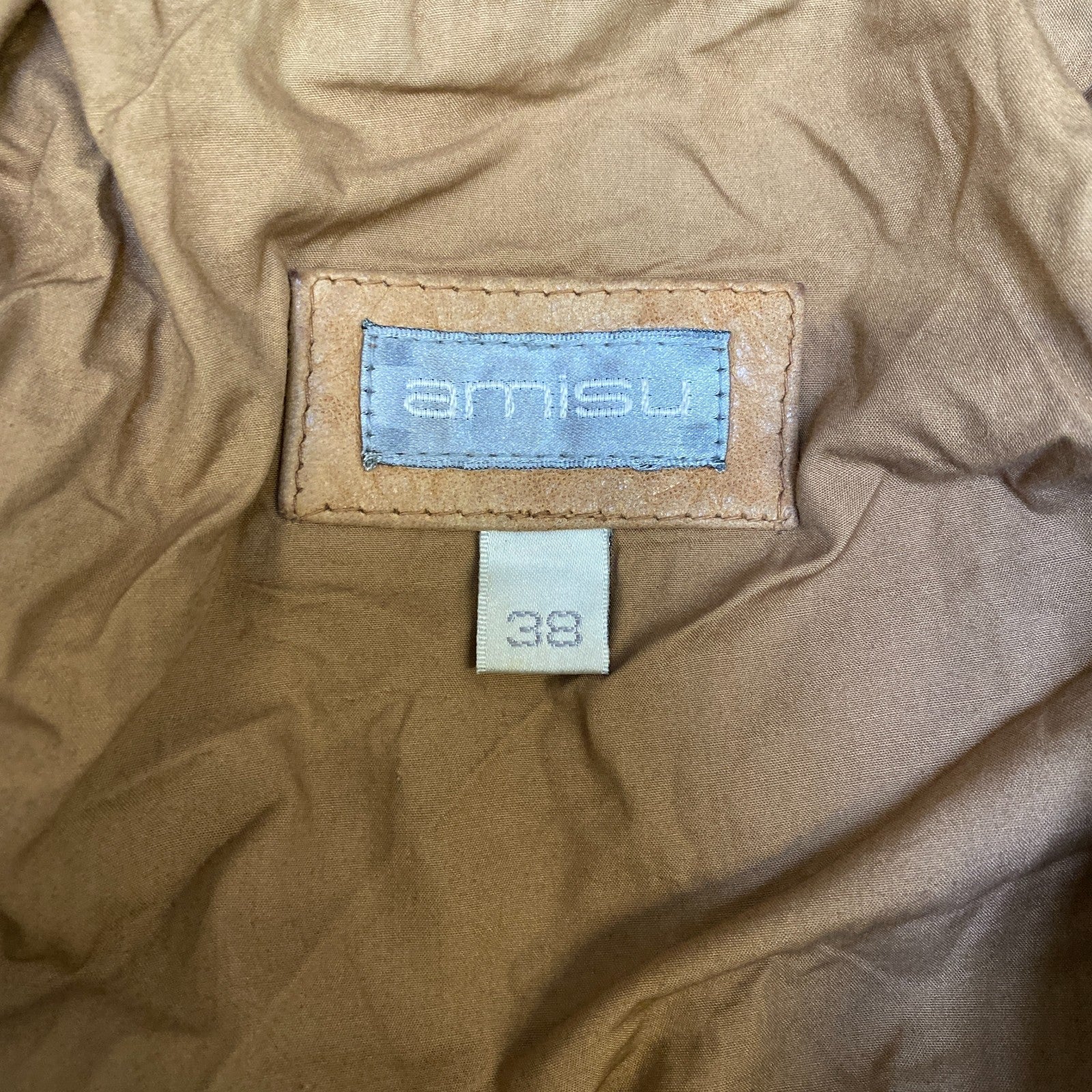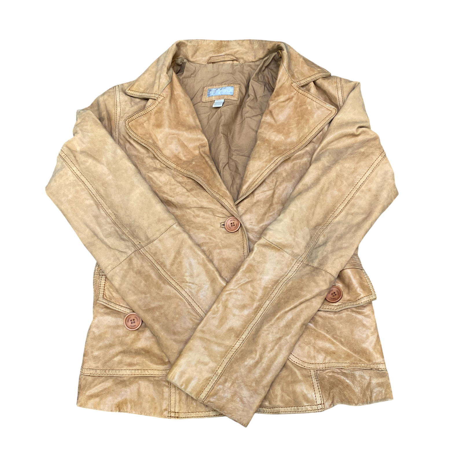 Amisu Genuine Leather Blazer Jacket Womens Medium Brown Lined Single Breasted