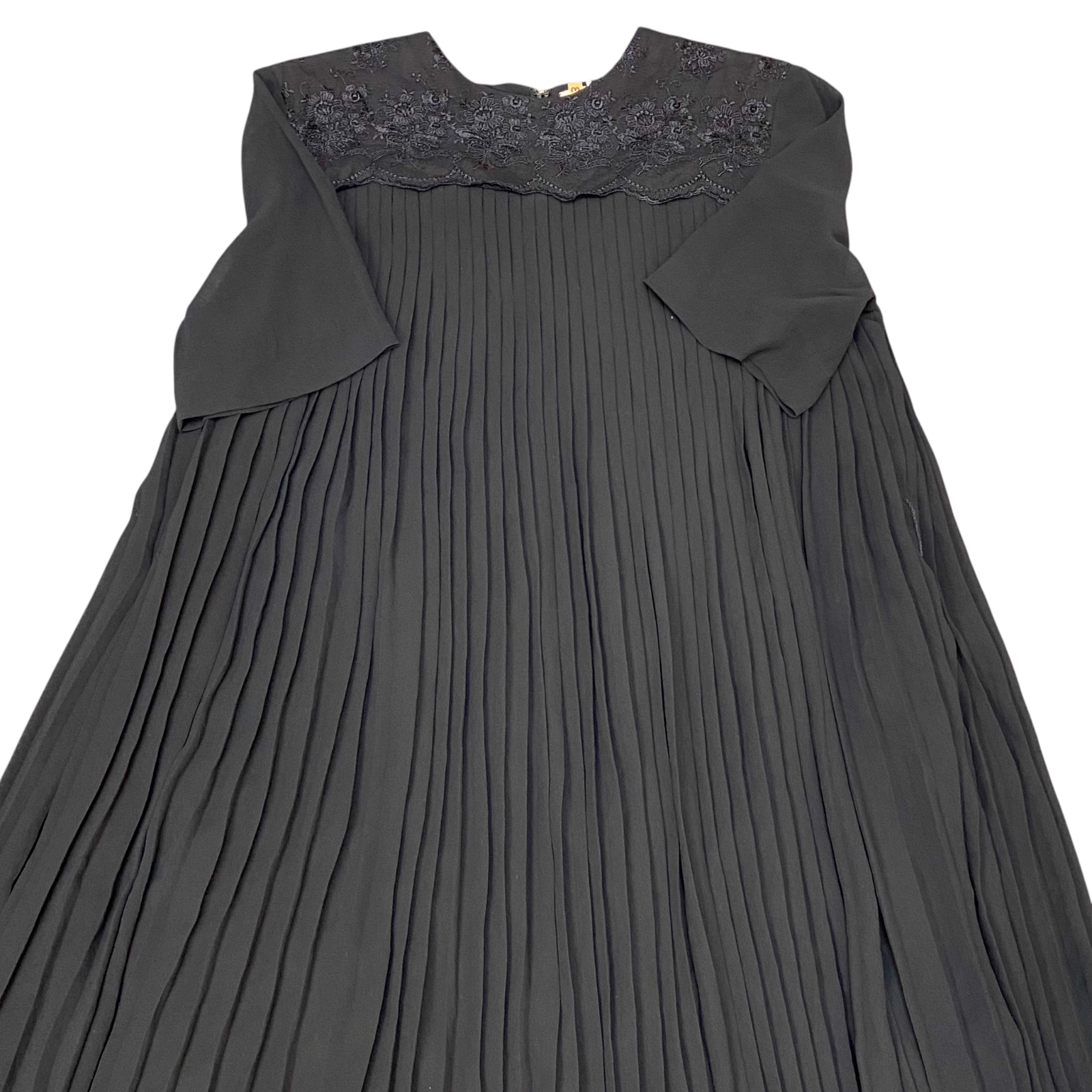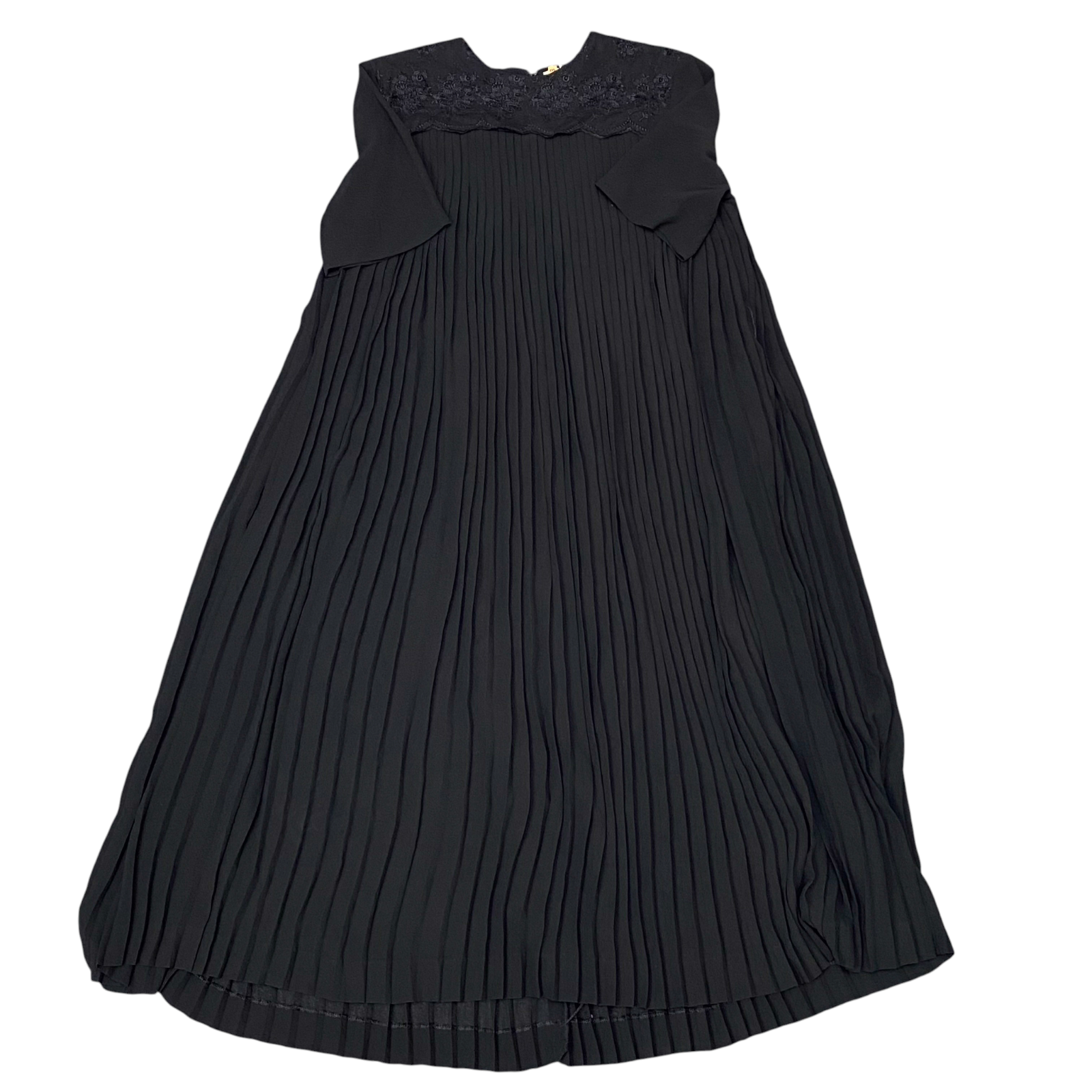 Anamsa 263 Pleated Dress Womens M Black Short Sleeve Round Neck Back Zip Comfort