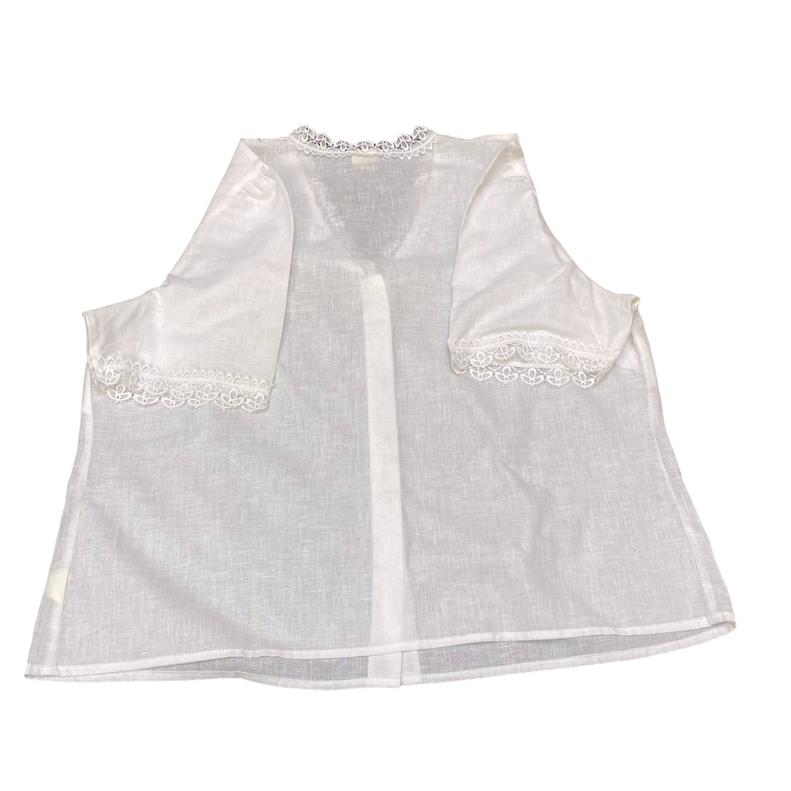 Angelika Moden Blouse Top Womens L White Lace Trim Short Sleeve Button Front
