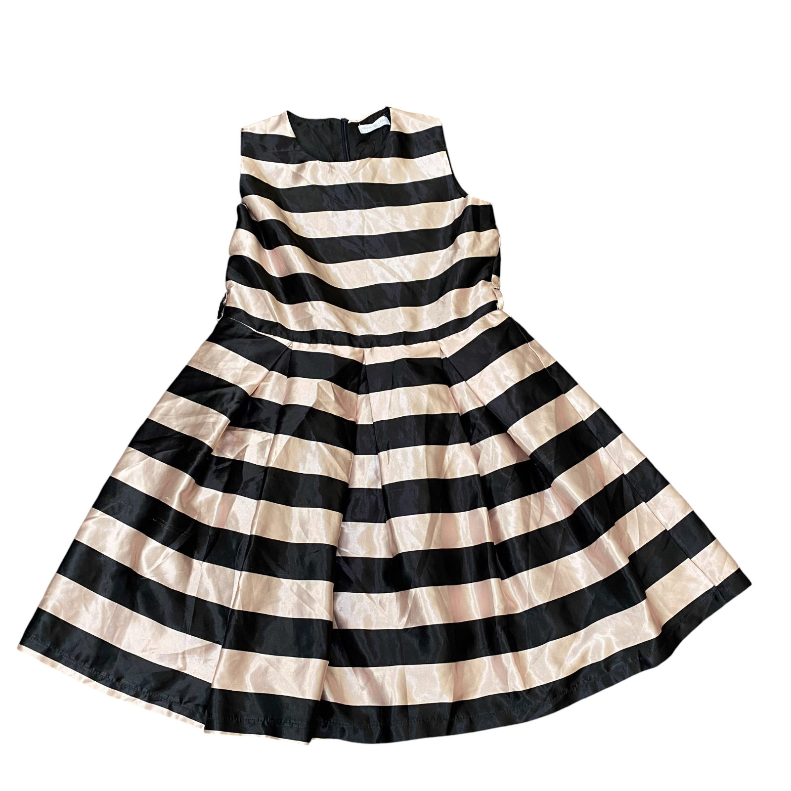 Annes Nicole Short Dress Womens S Cream Black Stripe Pleated Sleeveless Back Zip