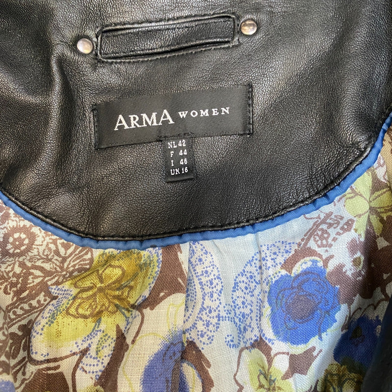 Arma Genuine Leather Blazer Jacket Womens M Black Notch Lapel Single Breasted