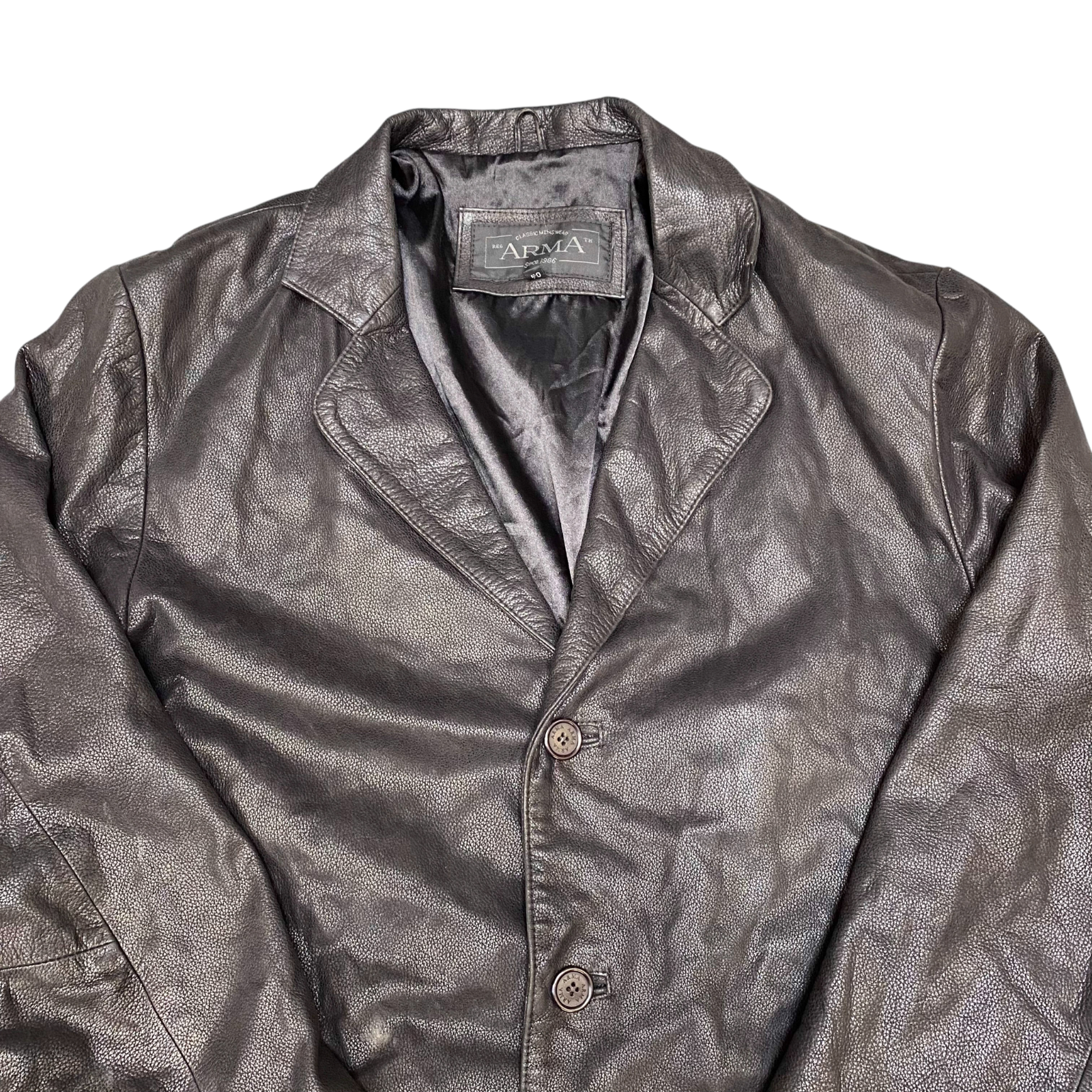 Arma Genuine Leather Jacket Mens M Black Notch Lapel Single Breasted 3 Button
