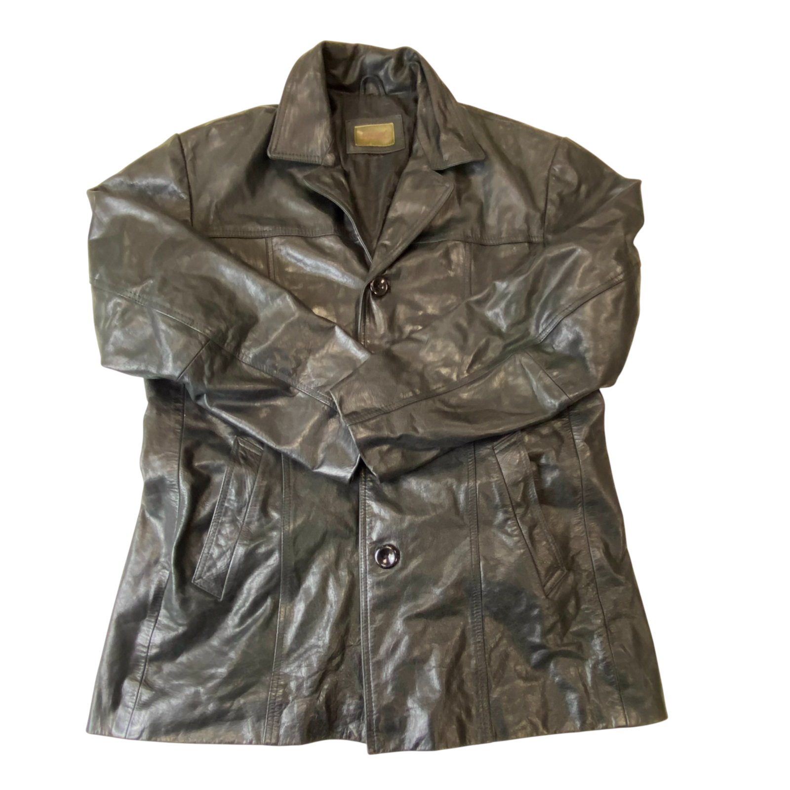 Avia Trix Leather Jacket Mens Medium Black Long Sleeve Collared Button Front