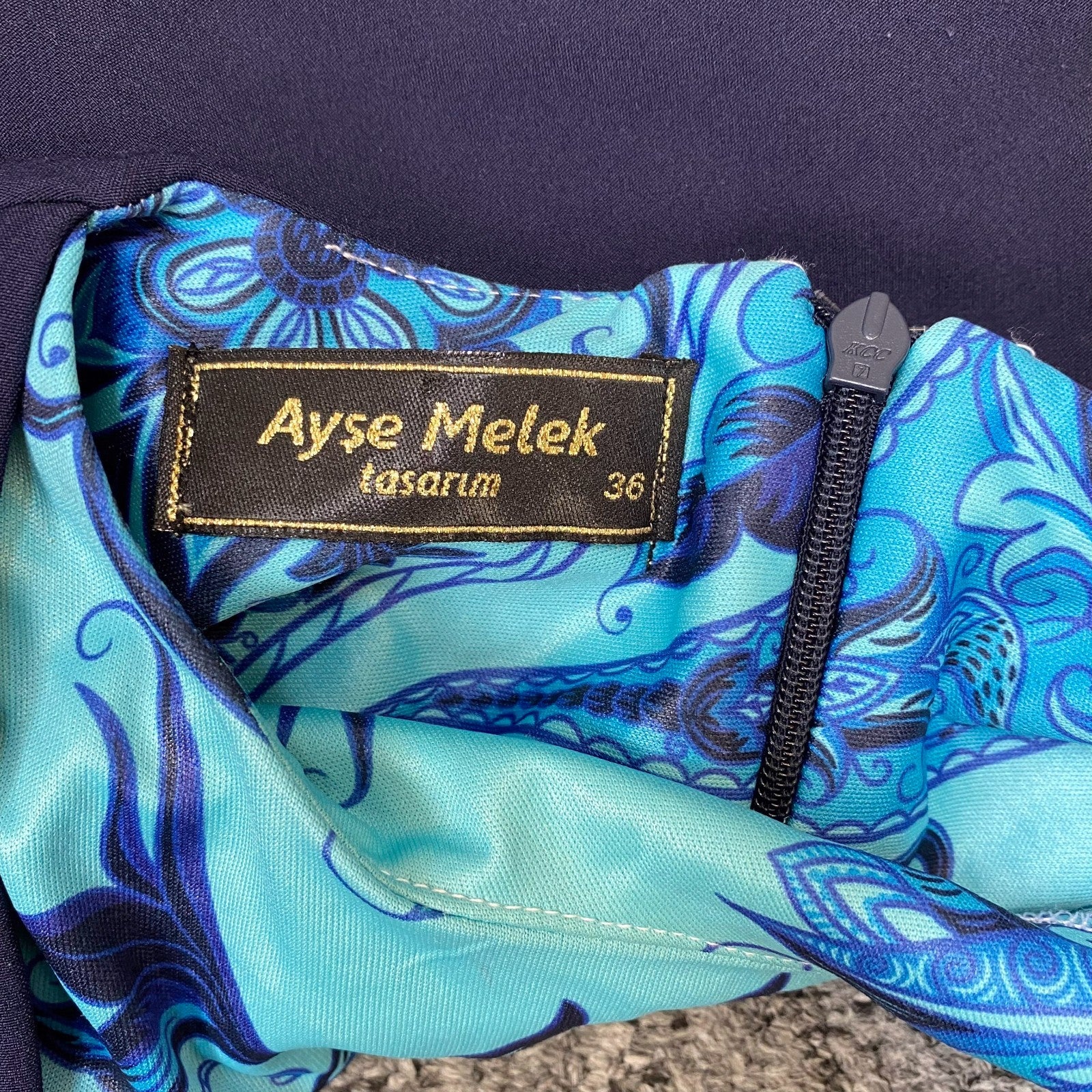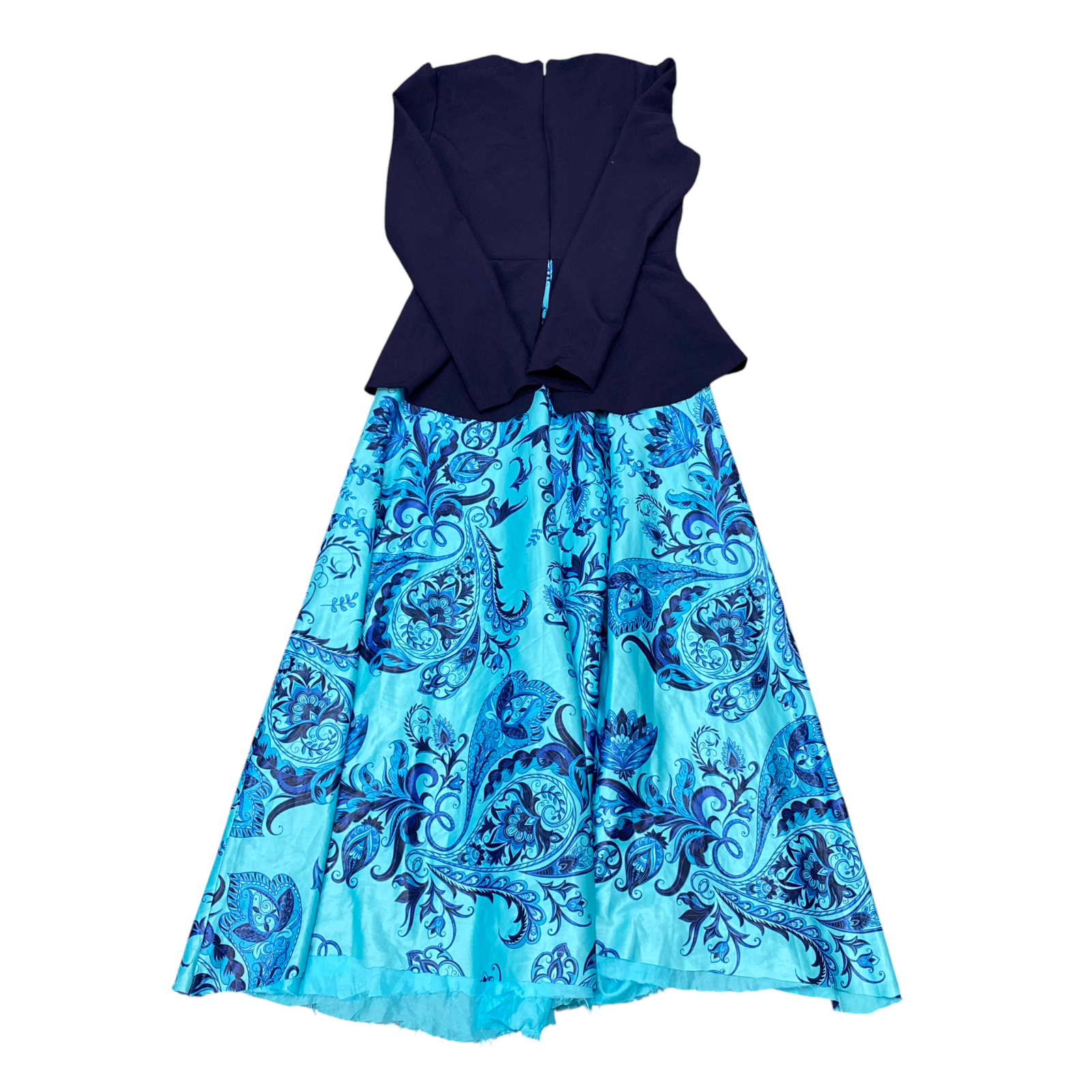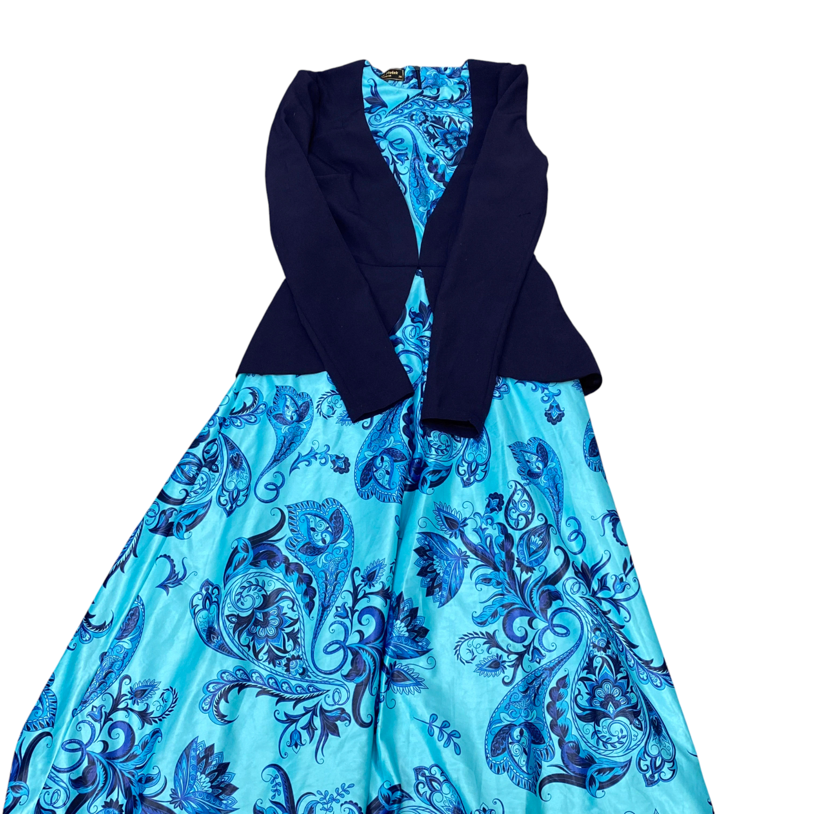 Ayse Melek Maxi Dress Womens S Blue Paisley Floral Flared Round Neck Back Zip