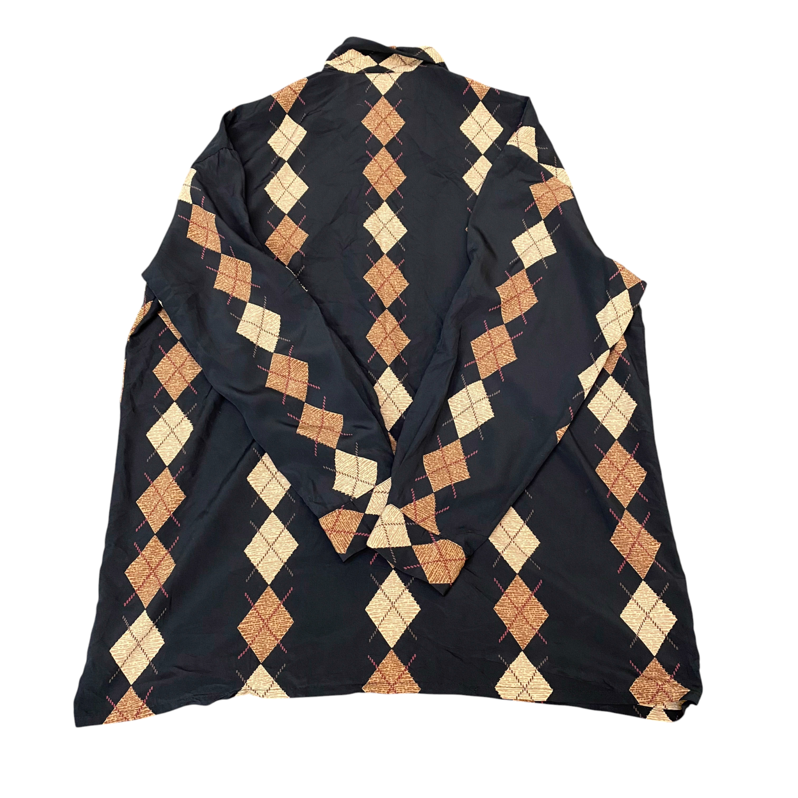 Bell Guess Shirt Top Womens L Black Brown Argyle Diamond Long Sleeve Button Down
