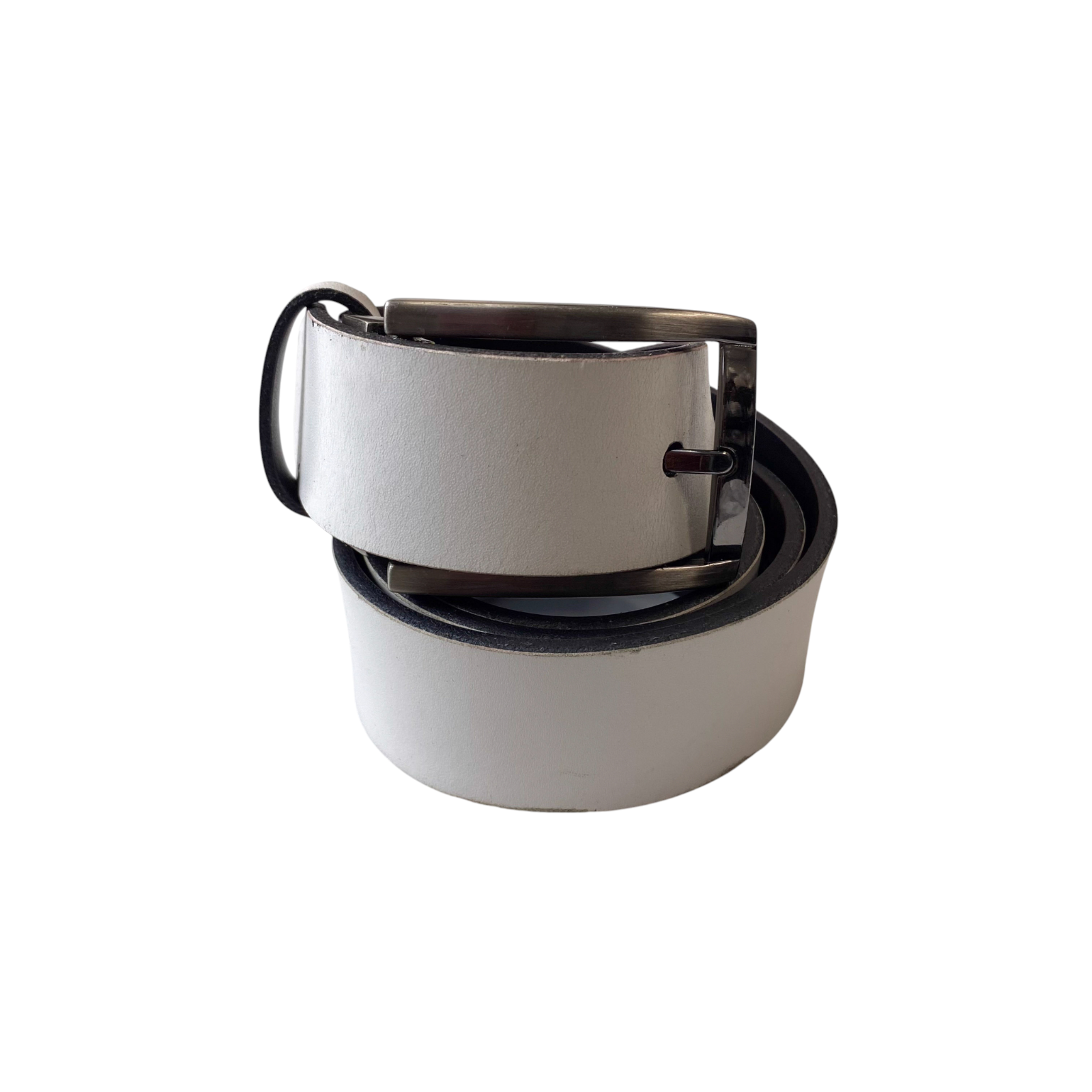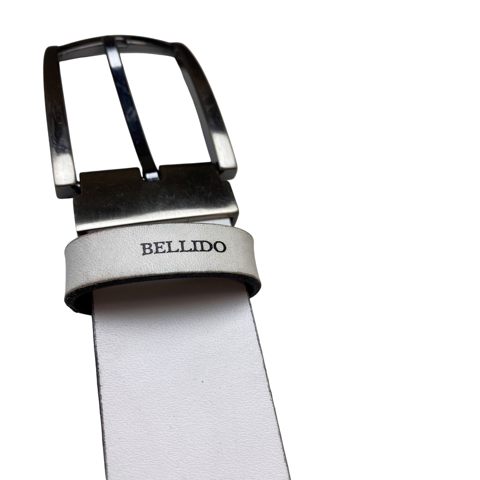 Bellido Design Waist Belt Men White Leather Adjustable Silver Pin Buckle 50 in