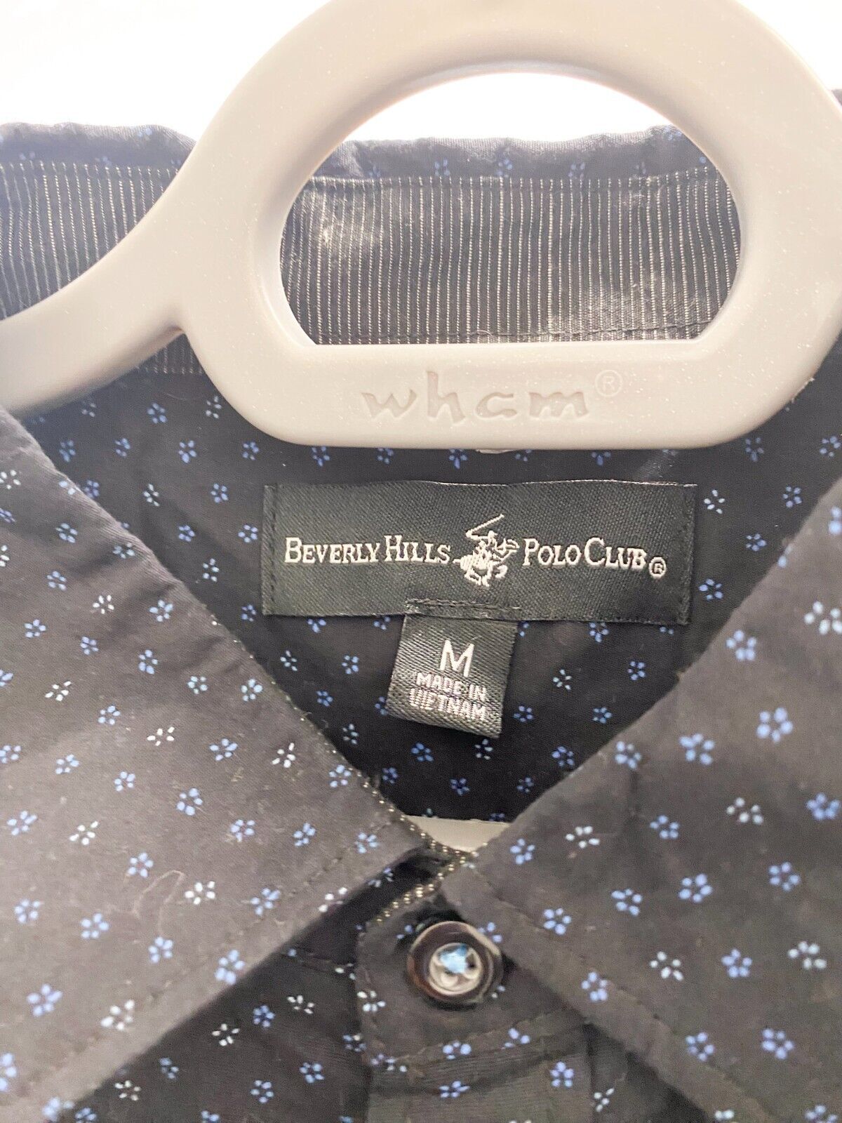 Beverly Hills Shirt Mens Medium Black Patterned Long Sleeve Collared Button Down
