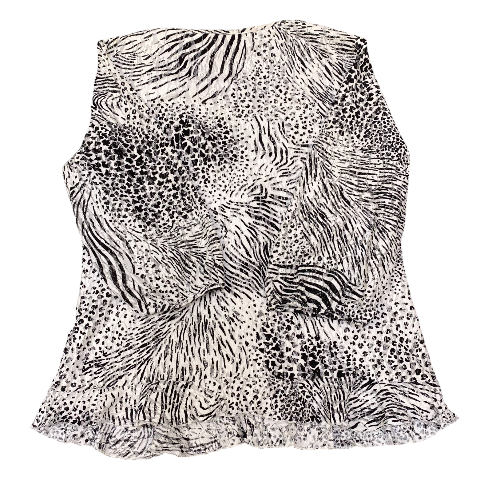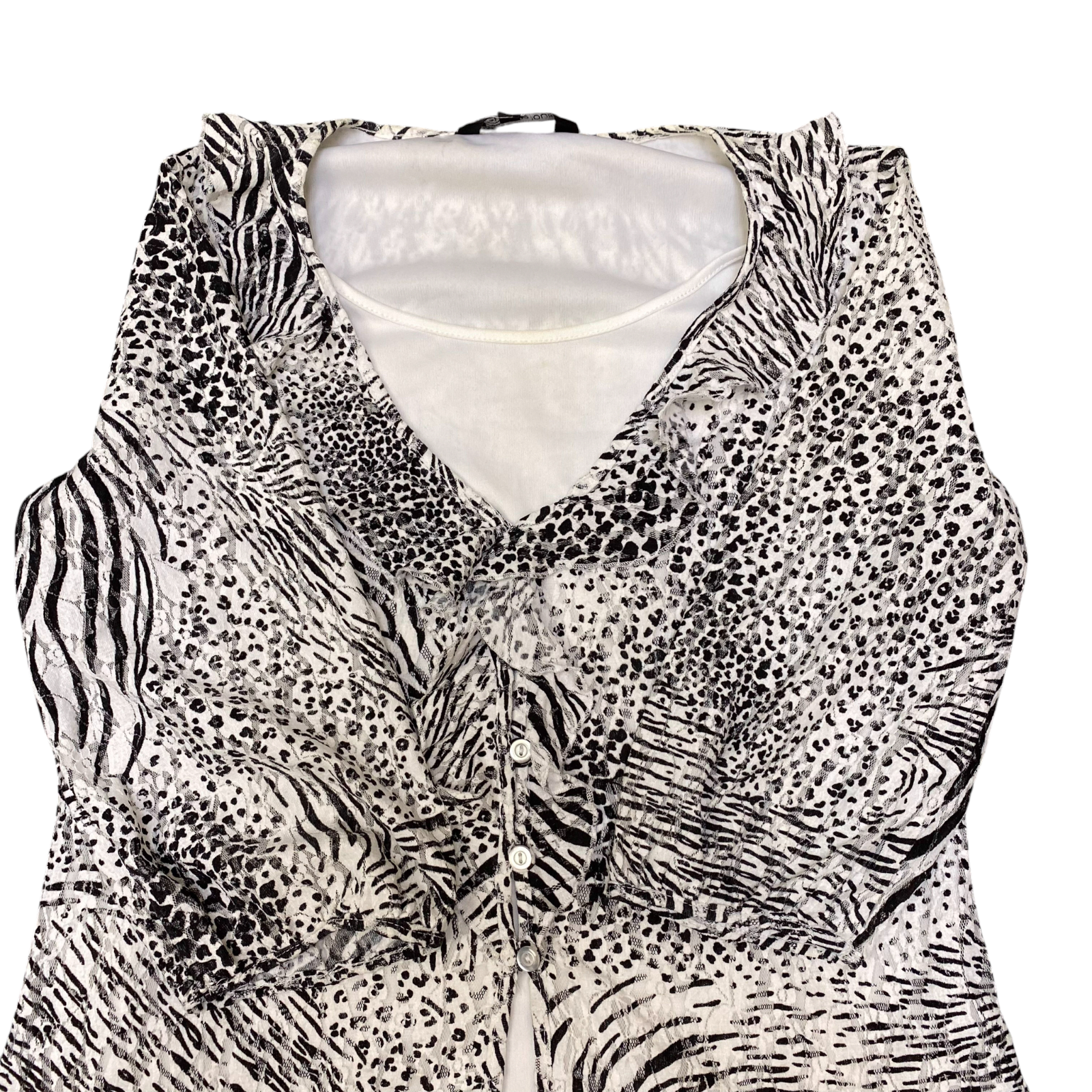 Blouse Top Womens M White Black Leopard Print Ruffled Detail Peplum Hem Outdoor